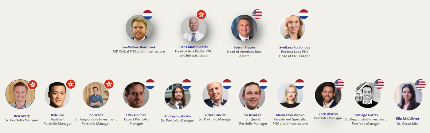 PNC team consists of 15 investment professionals (9 of which are PNC-dedicated), positioned across all APG offices (HK, AMS, NY) to ensure localized expertise for each PNC asset.
